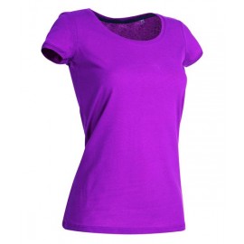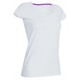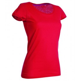 Dámské tričko s krátkým rukávem a kulatým výstřihem, boční švy. Módní žebrovaný průkrčník, kontrastní lem na vnitřní straně. Materiál: 100% přadená prstencová bavlna, 145 gsm. Doporučená technologie tisku: sítotisk S3, S4, výšivka.