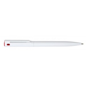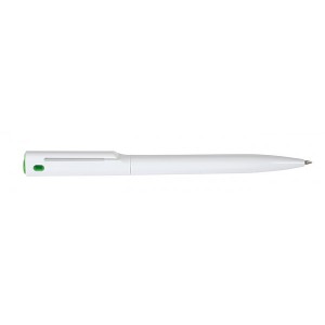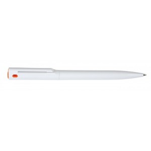 Plastové kuličkové pero s tlačítkovým mechanismem a modrou náplní. Pero je bílé s barevným detailem pod klipem a stříbrnou špičkou a tlačítkem. Rozměr: 14,2cm. Doporučená technologie tisku: Tampontisk T1, UV tisk UV1