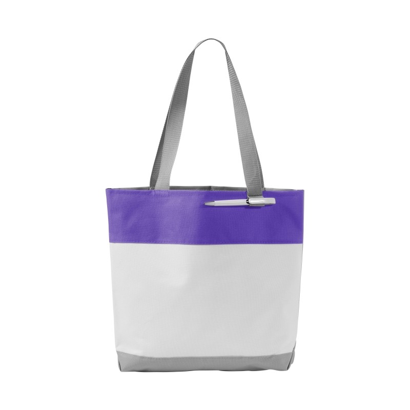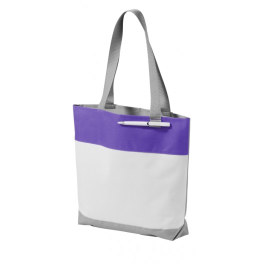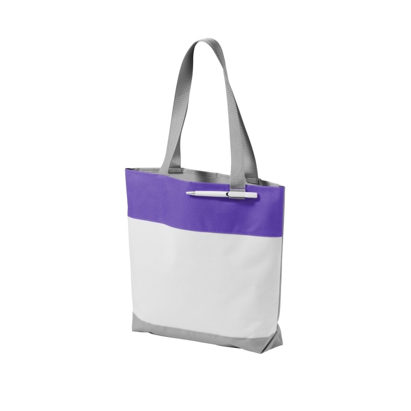 Nákupní taška z polyesteru s poutkem na propisku, bílá, fialová