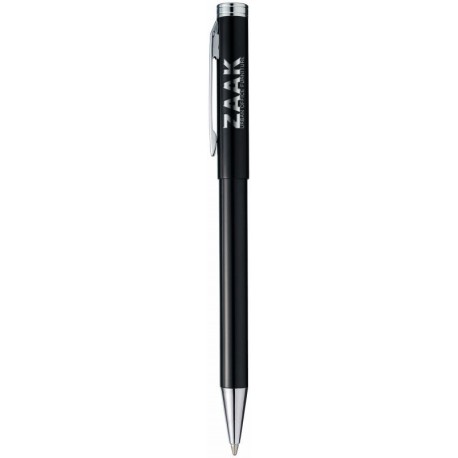 Kuličkové pero kovové černé se stříbrnými lesklými doplňky a klipem. Hliník. Doporučená technologie tisku: laser L1. Maximální velikost tisku: 40 x 5 mm.