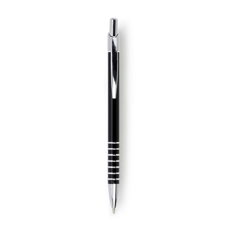 SERAK Hliníkové kuličkové pero s kroužky na úchopu a modrou náplní, černé