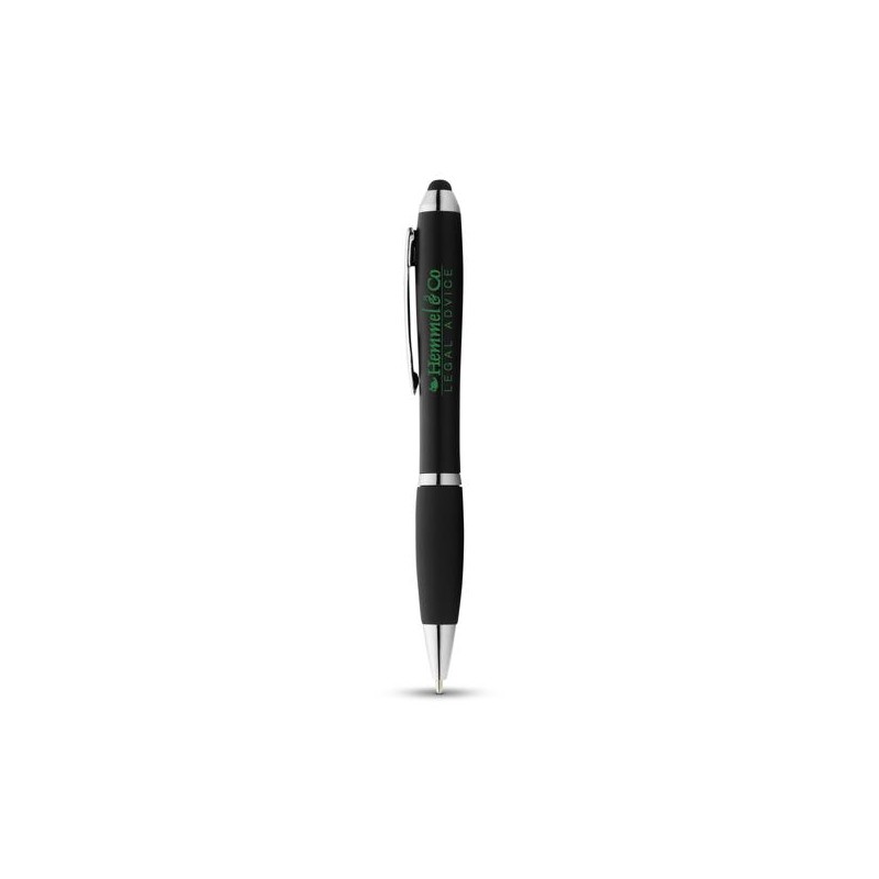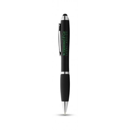 Kuličkové pero s černým úchopem a stylusem, náplň černá, černá