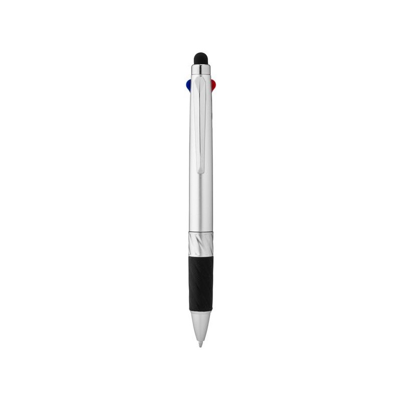 Multifunkční pero, 3 náplně a stylus, černá, modrá a červená náplň. Doporučená technologie tisku: tampontisk T2. Maximální velikost tisku: 45 x 6 mm Rozměry: O 1,2 x 14,3 cm Kartonové množství v ks: 500