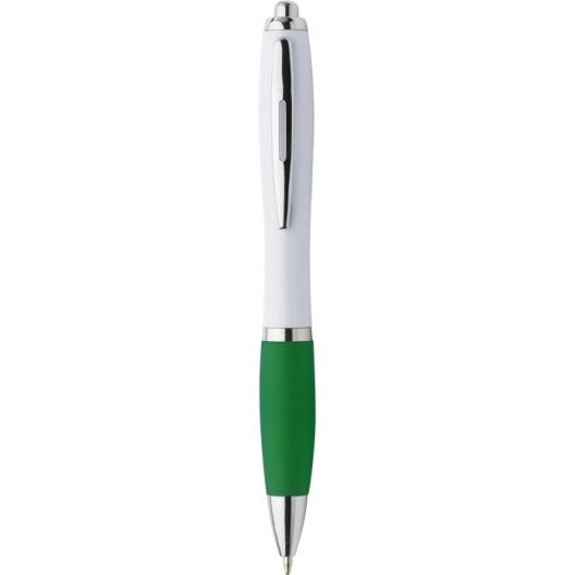 GRUMAN Bílé plastové kuličkové pero s modrou náplní a zeleným úchopem