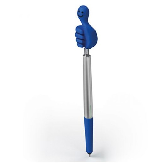 Originální kuličkové pero se "smile hands" modré barvy, s modrou náplní a stylusem (na smartphony a tablety). Doporučená technologie tisku: tampontisk T2. Rozměry: 17,8 x 3,4 x 1,2 cm