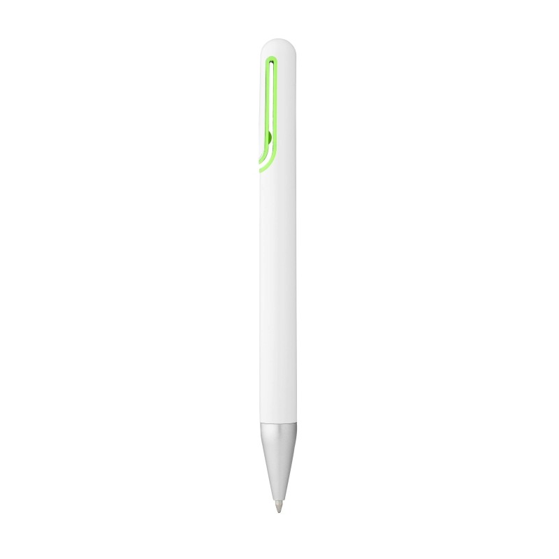 Plastové kuličkové pero s netradičním klipem, bílá/světle zelená