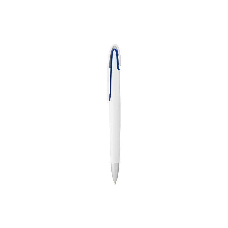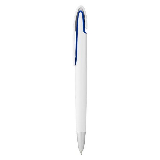 Bílé kuličkové pero s designovým klipem, modrá náplň, tmavě modrá