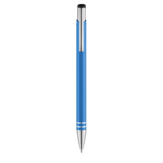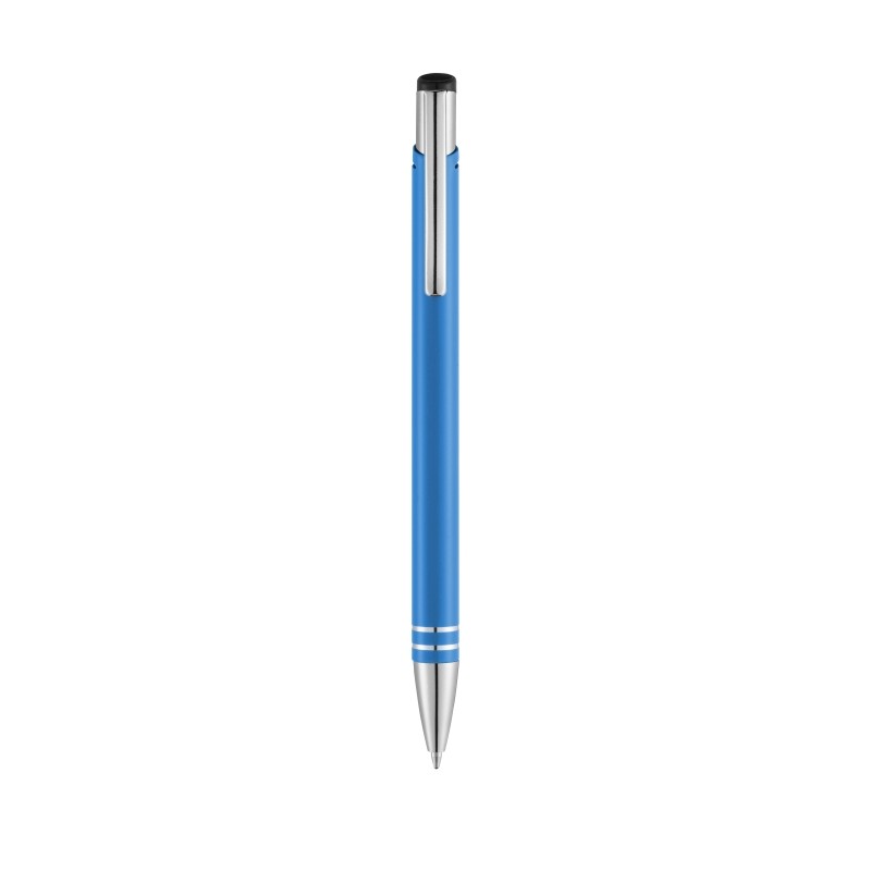 Hliníkové kuličkové pero s dvěma stříbrnými kroužky, modrá