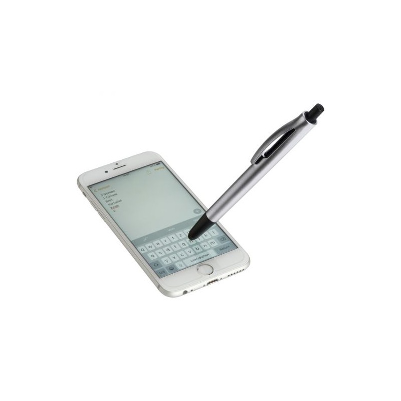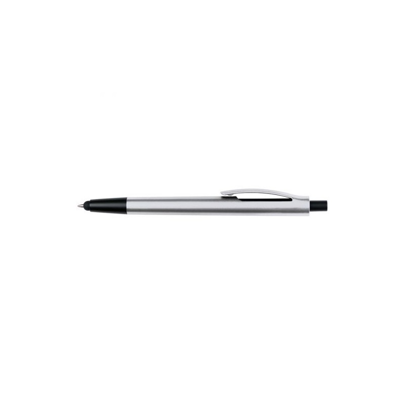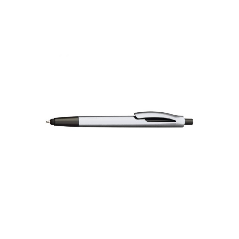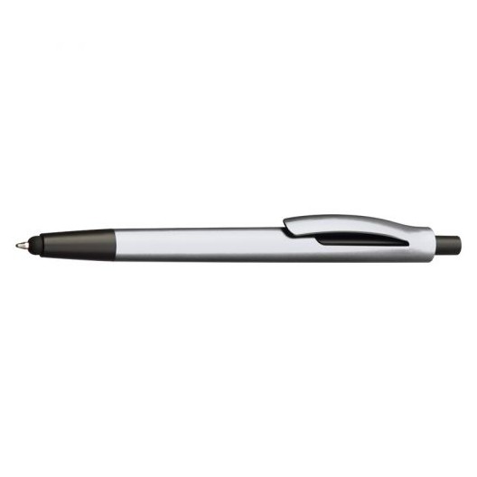 Plastové kuličkové pero s černými doplňky a stylusem. Rozměry: 14 x o 1,1 cm. Doporučená technologie tisku: tampontisk T2. Kartonové množství v ks: 1000