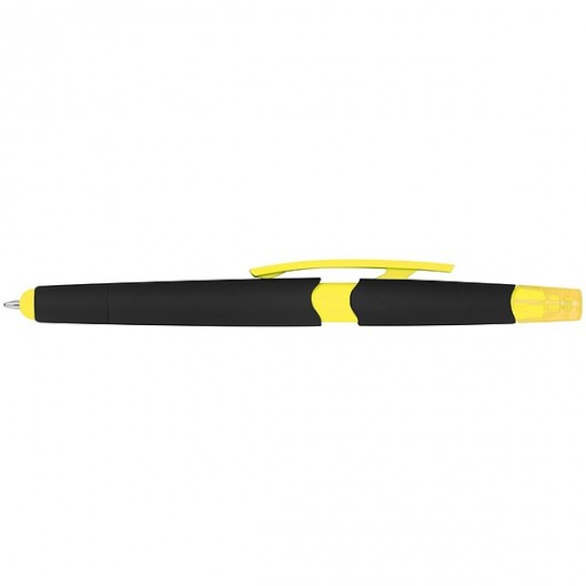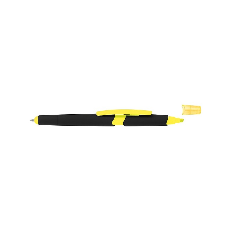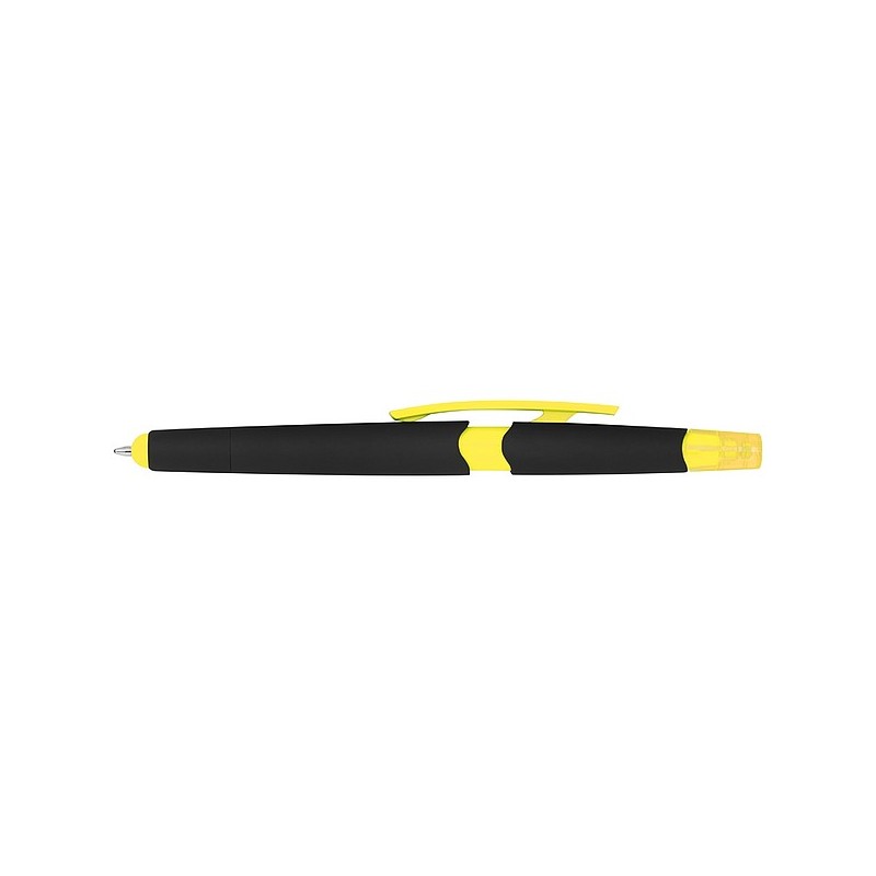 Plastové KP se stylusem, modrou náplní a se zvýrazňovačem, černo žluté