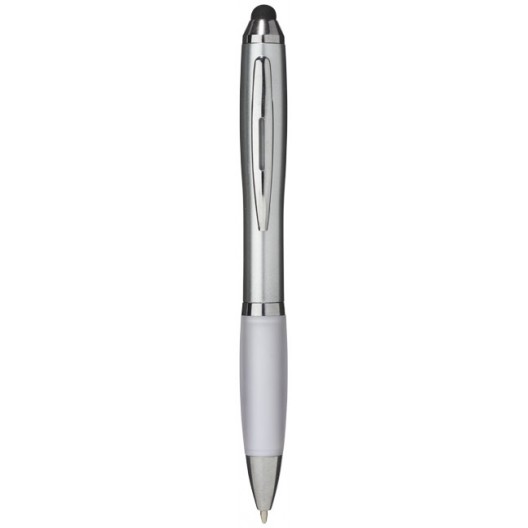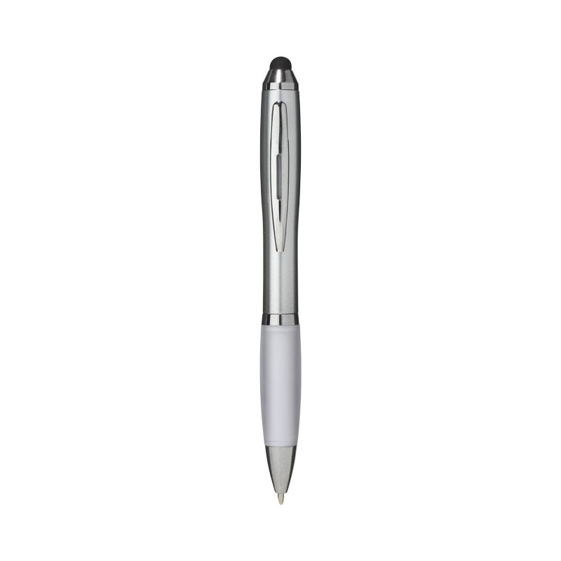 Kuličkové pero se stylusem, stříbrné tělo, bílá