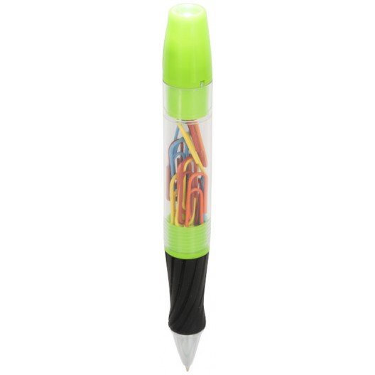 EMARO Plastové KP s otočným mechanismem, LED světlem a kancelářskými sponkami, černá n., zelená