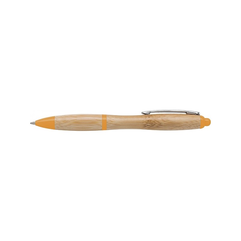 Bambusové kuličkové pero s barevným akcentem. Oranžová.