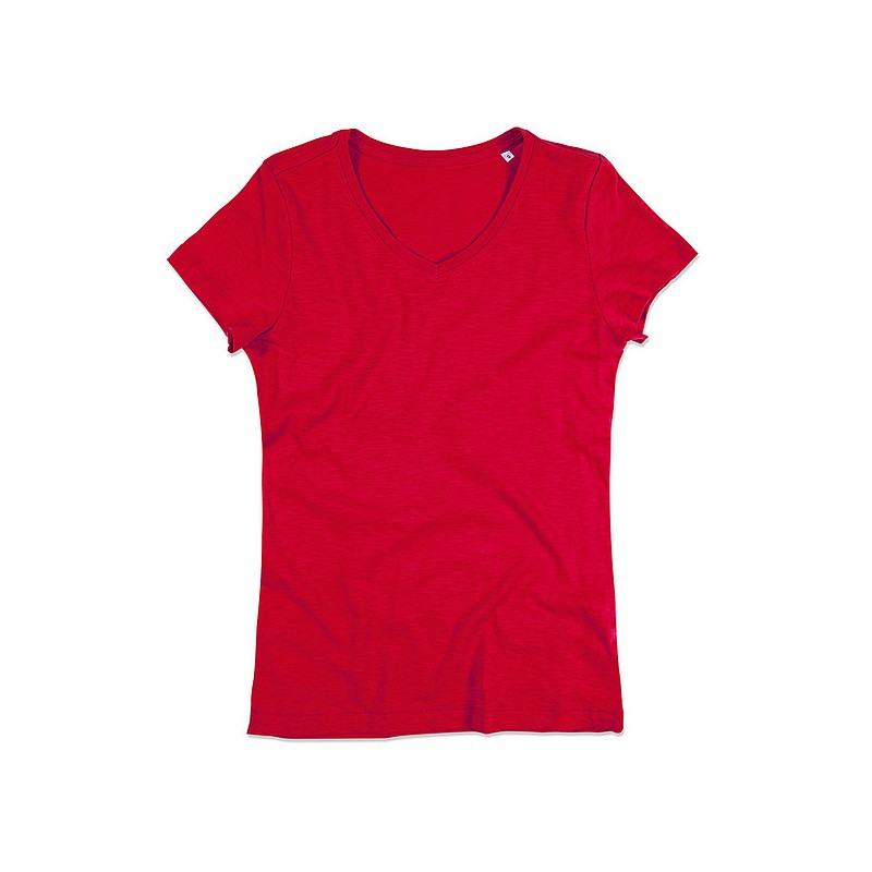 do V, žebrovaný průkrčník, boční švy, módní slub struktura materiálu, 100% přadená prstencová bavlna, 140 gsm. Doporučená technologie tisku: sítotisk S3, S4, výšivka.